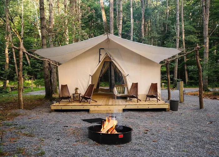 Luxury Group Safari Tent Complete With Firepit And Patio, Perfect For A Weekend Escape To The Adirondacks